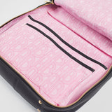 For regular cleaning, a damp cloth and mild leather cream may be applied. Please test any new cleaners in a small area first before using on the rest of your bag.